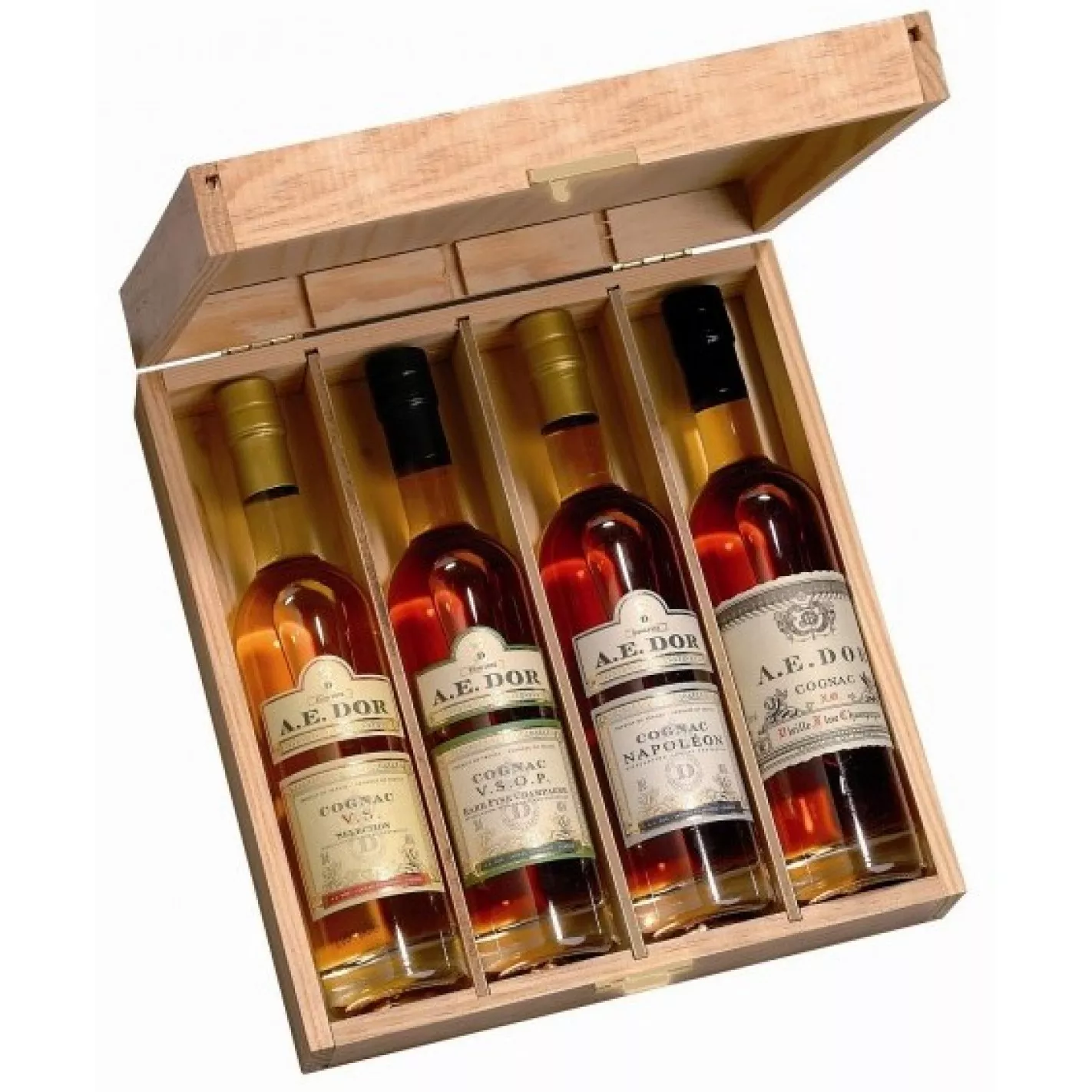 Consisting of 4 x 200ml bottles set in a delightfully simple wooden presentation box, this is a wonderful product to discover the range of AE Dor Cognac. It would also be a great choice as a gift to any Cognac lover.