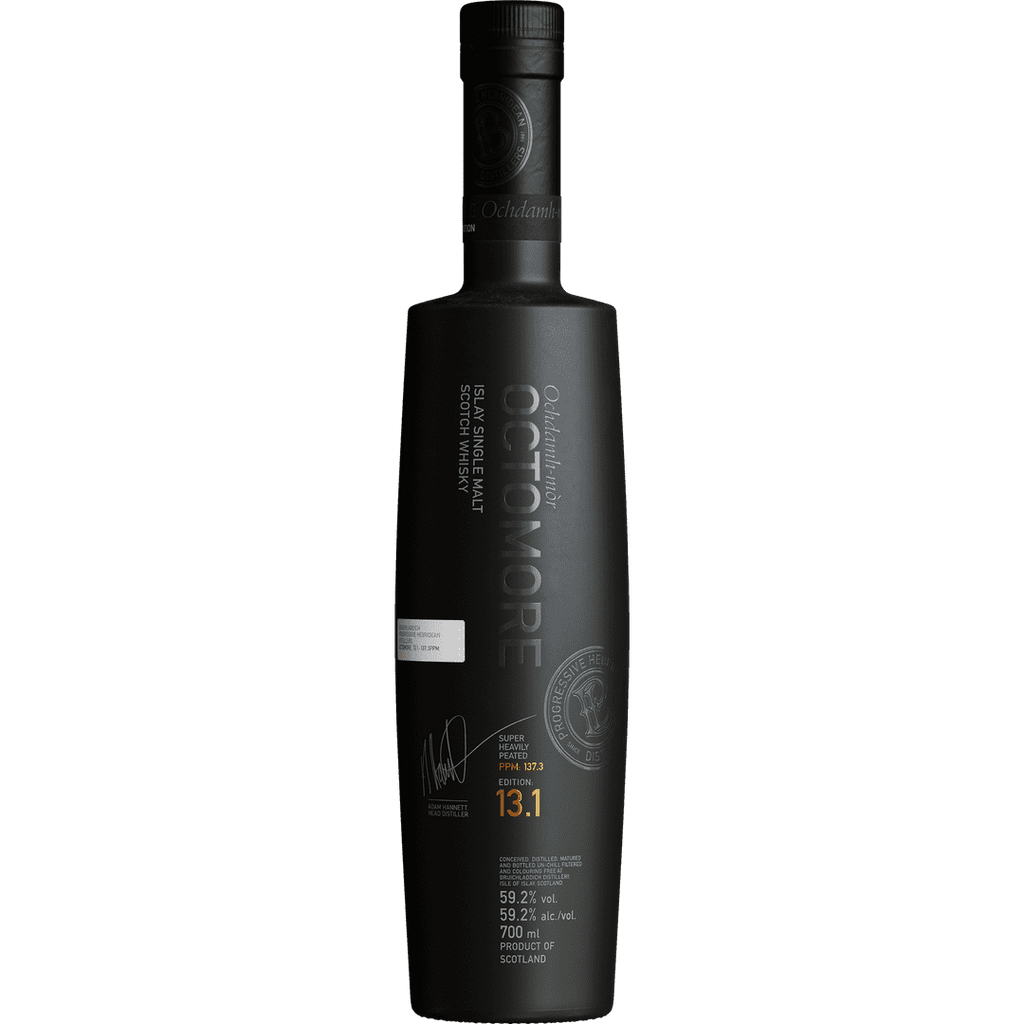 Octomore 13.1 is as youthful and dynamic as its super-heavily peated predecessors. Distilled patiently from the 2015 harvest of 100% Scottish Mainland barley, this single malt is malted to a stratospheric 137.3 PPM and matured in the highest quality American oak casks.