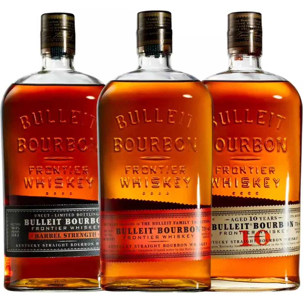 Bulleit Bourbon, 10 Year Bourbon, & Barrel Strength Bourbon Value Bundle 750 mL