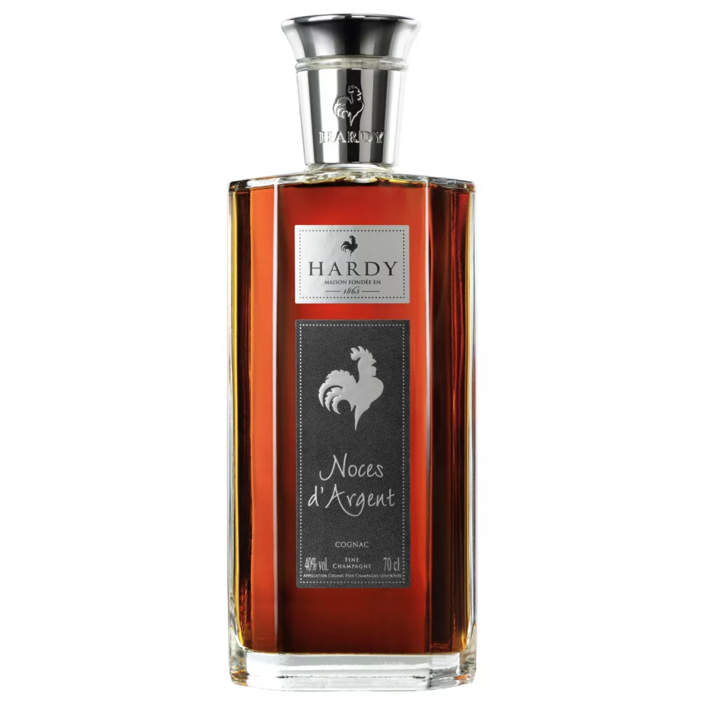 Conceived as part of the Wedding Anniversary series by the esteemed House of Hardy, the Hardy Noces d’Argent Fine Champagne Cognac is really something quite special. Aged for 25 years, this marvelous marriage of Petite and Grande Champagne eaux-de-vie is proof that as the quality and richness of this exquisite eaux-de-vie improve year after year, reaching an optimum level of finesse and flavor after a quarter of a century in old oak casks. Enjoy the rich, sweet, spicy and smoky tones of this sophisticated Cognac.
