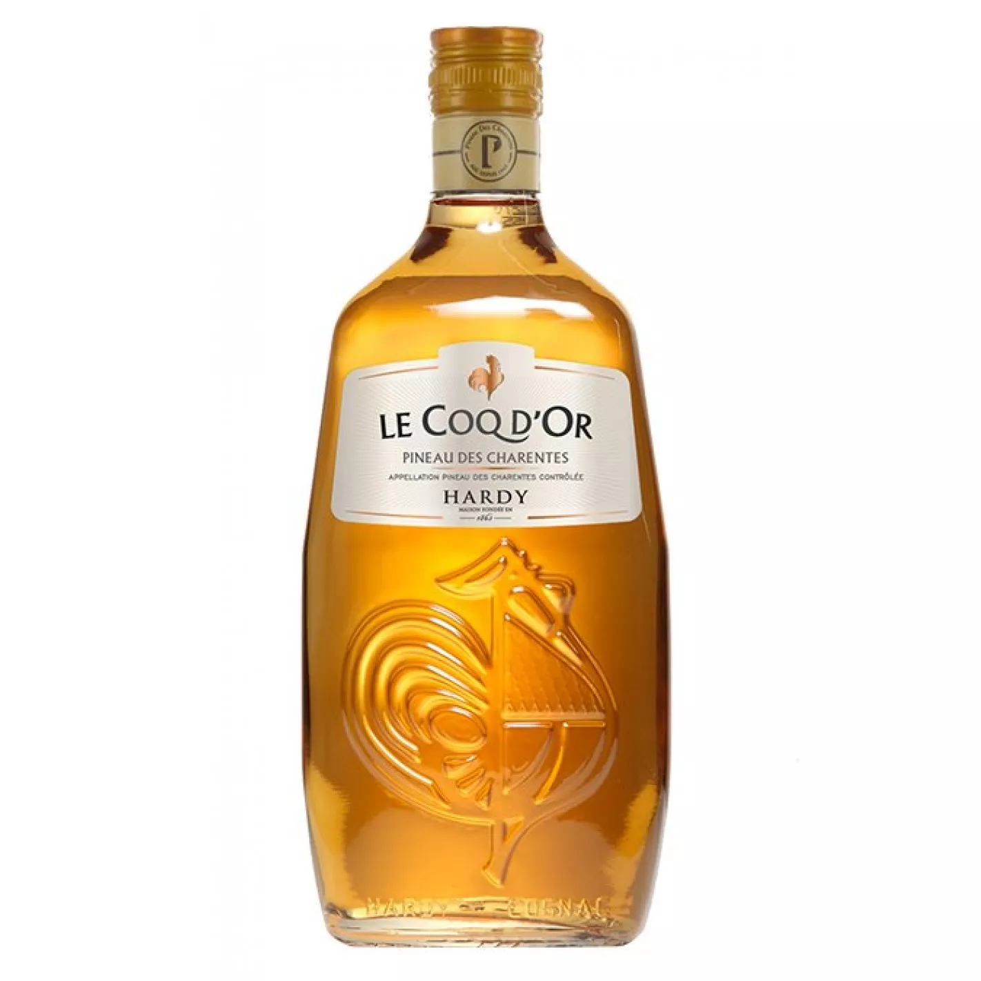 This white Pineau des Charentes is made using the Ugni Blanc, Folle Blanche and Colombard grape varieties, combining the lightly fermented grape must with Cognac eau-de-vie before being aged for a minimum of five years to be given the classification ‘Vieux Pineau’. This expression shows the true Hardy style, fine and subtle in aroma – offering a perfect balance between freshness and roundness. Hardy Pineau Blanc Le Coq d’Or boasts a golden colour and complex palate, making it an intense, elegant, full pineau – perfect both before and after dinner.