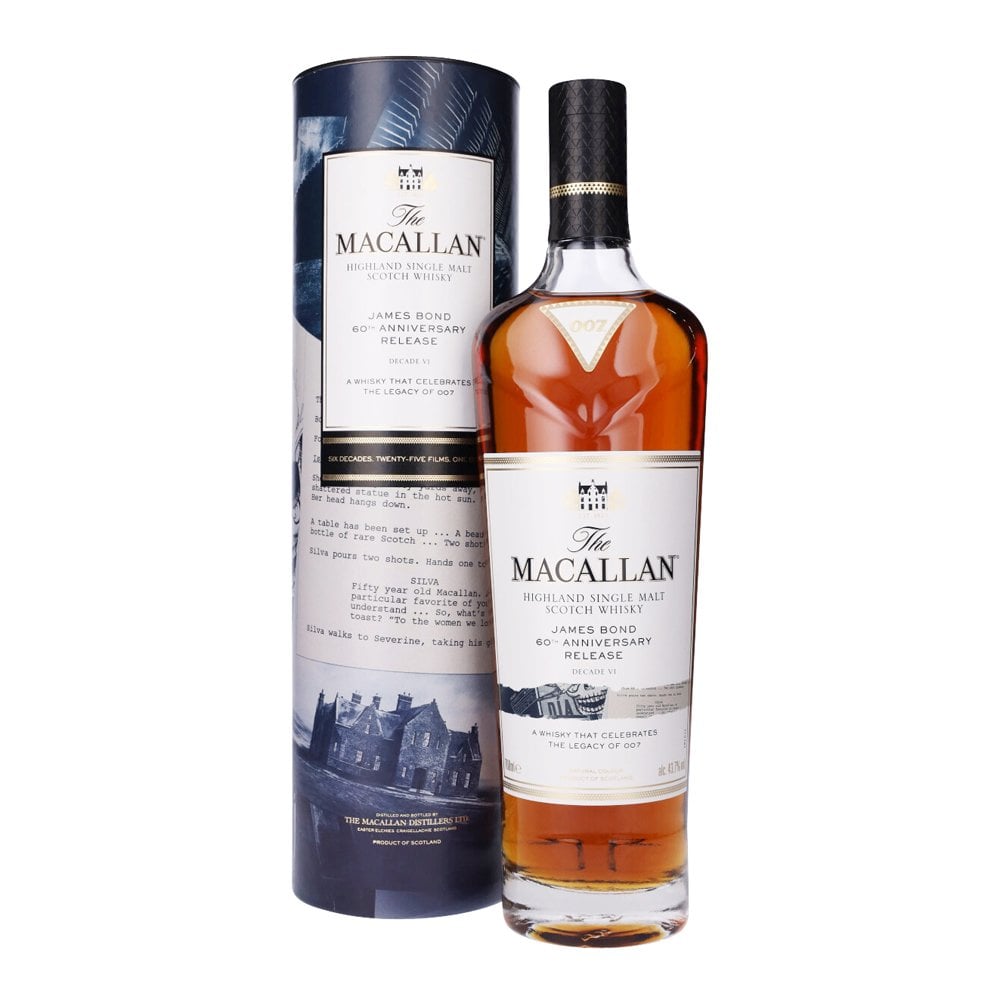 Here we have the ‘Decade VI’ whisky from the MacAllan’s Six Decades of Bond collection. The artwork pays tribute to two Daniel Craig films: Skyfall and Spectre. The whisky itself is common to all six bottles; it was crafted by the distillery’s Master Whisky Maker, Kirsteen Campbell.
