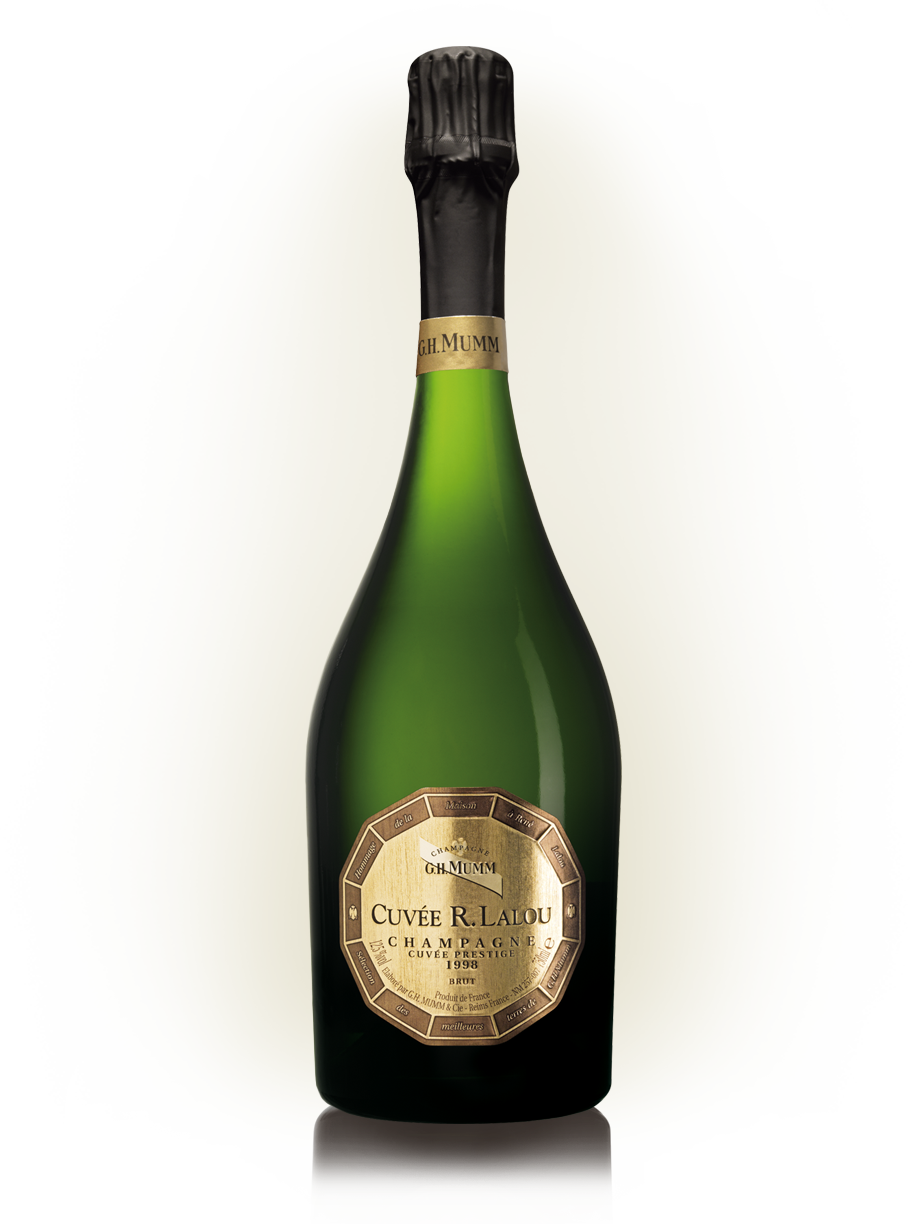 G.H Mumm R. Lalou Brut 1998, the first Prestige Cuvee made under this label since 1985, after nine vintages starting with 1966. The wine is named after Rene Lalou, who as chairman of Mumm restored its luster after the devastation of the vineyards brought by two world wars.