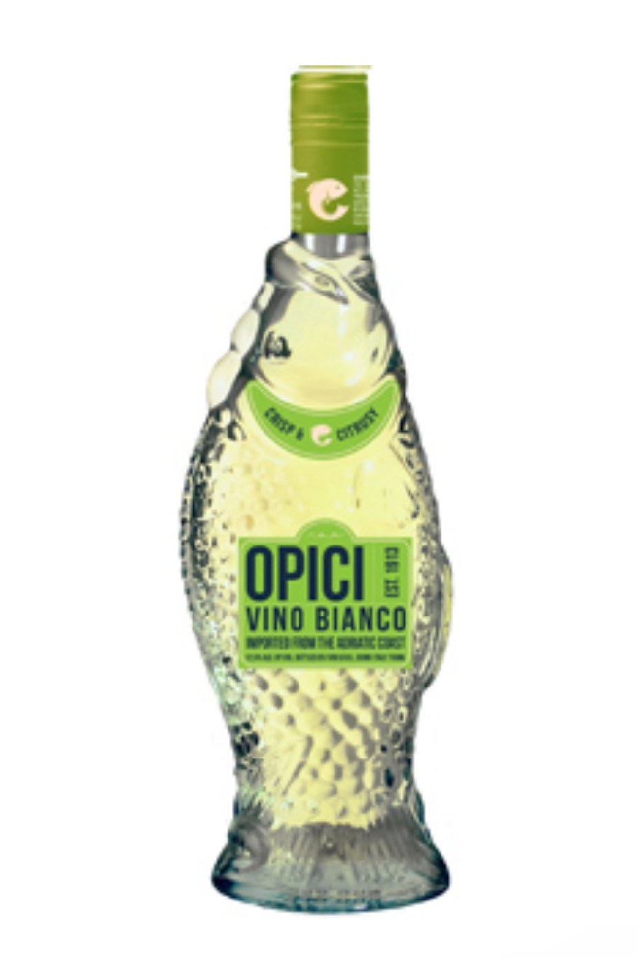 Opici Bianco in the iconic fish-shaped bottle is a light and refreshing white wine, perfect for casual drinking and entertaining. This Italian Bianco is known for its straightforward, fruity profile, with notes of white peach, citrus, and a hint of floral. Its playful packaging and easy-drinking nature make it a favorite for parties, picnics, or pairing with light dishes such as salads, seafood, or as a charming conversation starter.