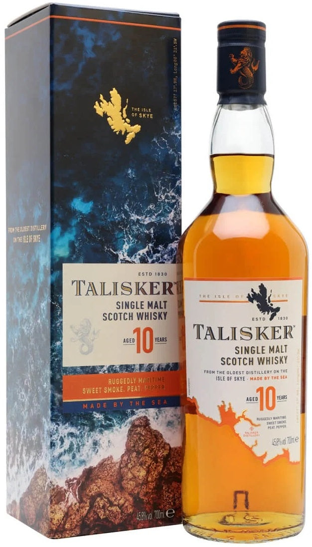 “Talisker is one of the six ‘Classic Malts’ carefully selected to best represent each of the amin whisky producing regions of Scotland. They embrace full diversity of regional tastes and styles. Talisker is the only malt produced on Skye. Its seaweedy, smoky nose and sweet maltiness is perfectly complemented by its spicy long finish. “