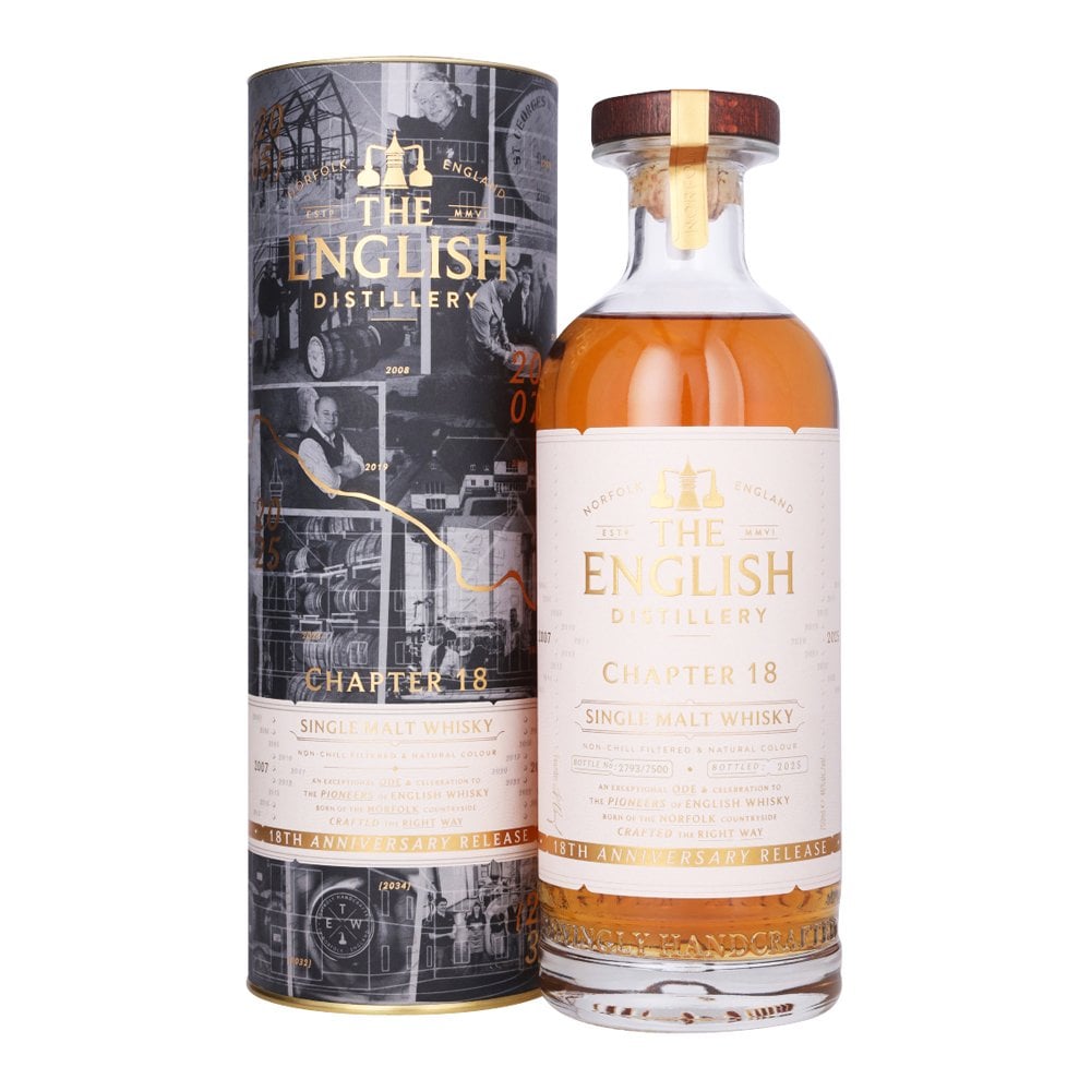 From pioneering distillery The English Distillery, Norfolk comes this very special single malt. This expression is a vatting of carefully selected American oak, virgin oak and pedro ximenez casks filled between 10 and 18 years ago. An exuberant release by The English Distillery in honour of their 18 year anniversary. Notes of caramel and red berries.