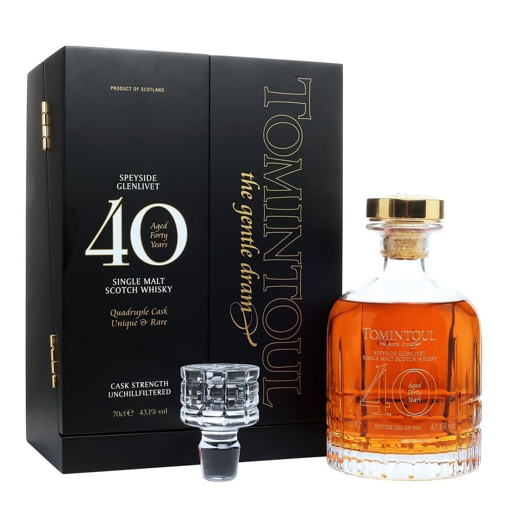Safe to say Tomintoul have come up trumps with this one, a Speyside whisky from the top shelf, aged for 40 years and created from the nectar procured from four different casks. Presented at cask strength and without chill-filtration, the delicate but disarmingly complex expression represents the crème de la crème.