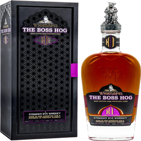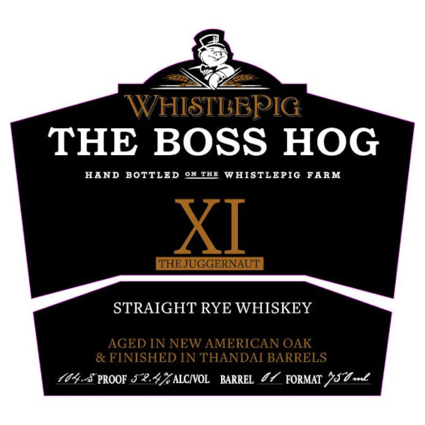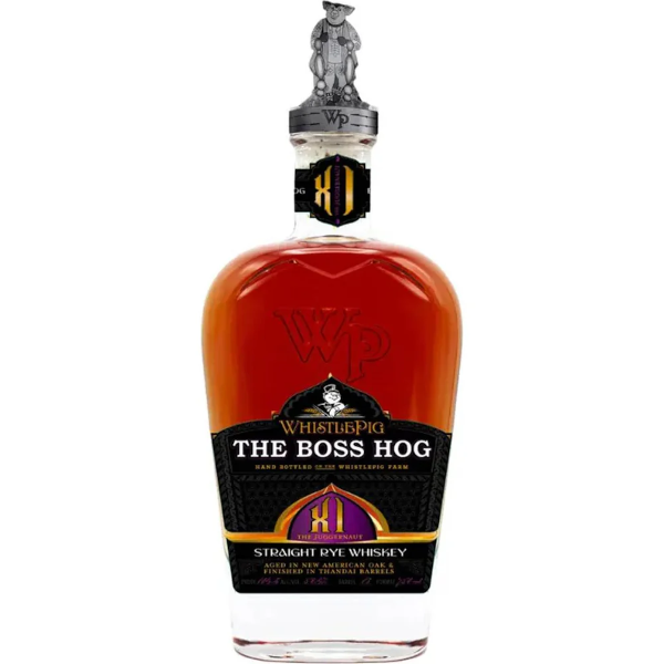 WhistlePig Boss Hog XI The Juggernaut Straight Rye Whiskey is a whiskey that is hand-bottled on the Whistlepig Farm and aged in new American oak barrels, then finished in Thandai barrels. It is part of the Boss Hog series, which is known for being refined Canadian rye whiskeys that are finished in Vermont. These whiskeys are rare and beloved by collectors, and are also considered expensive.